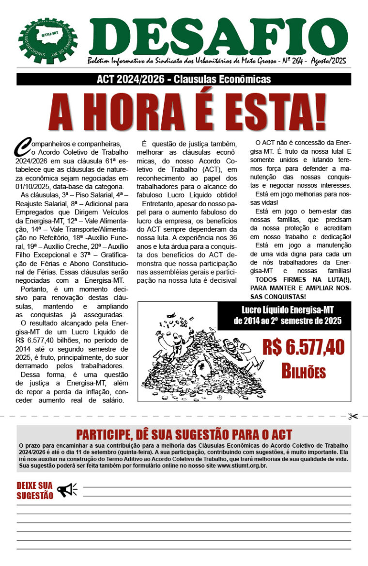 É dever de todos os trabalhadores da Energisa-MT, sejam novos ou antigos, participarem da luta pela renovação do nosso Acordo Coletivo de Trabalho, garantindo a manutenção de todas essas conquistas.