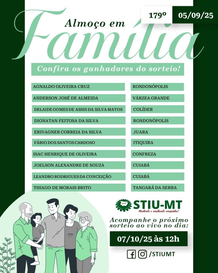 Confira quem são os ganhadores do 179º Sorteio do Almoço em Família.