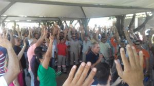 O STIU/MT realizou assembleia geral em frente ao portão 7 do Barro Duro, Cáceres, Rondonópolis, Confresa, Matupá, Barra do Garças, além do acompanhamento em vários municípios do Estado e em Cuiabá, por facebook, oportunidade em que foi discutida e aprovada a proposta negociada pela diretoria do Sindicato na reunião realizada em 3 de julho com representantes da Energisa MT. A proposta consiste no pagamento de R$ 4.880,00 para alcance de 100% do Programa, com o adiantamento de 50% – R$ 2.440,00 – que será pago juntamente com a folha de pagamento de julho do corrente ano. Ou seja: em 2 de agosto os trabalhadores receberão a metade do valor total do PPR/2018.